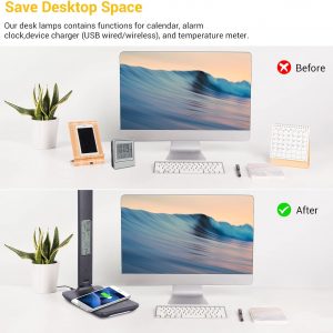 Led Desk Lamp with Wireless Charger, Desk Lamps for Home Office with Clock, Alarm, Date, Temperature | Desk Light with Night Light, 45 Min Auto Timer | Touch Control Smart Lamp for College, Dorm