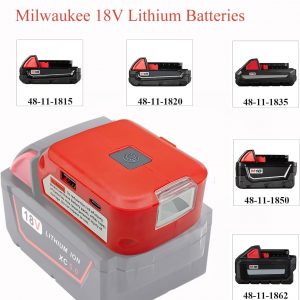 M18 Battery Adapter for Milwaukee USB Charger 18v, with LED Work Light & USB Charger & Type C Port & 12v DC Port for Heated Jacket, Adapter Tool Compatible with Milwaukee Lithium-Ion Battery