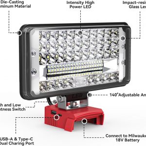 LED Work Light for Milwaukee m18 18v Battery, Ecarke 7” 68W Cordless Work Light 6800 Lumens of Brightness with with Low Voltage Protection&USB & Type-C Charger Port for car Repairing(Bare Tool Only)
