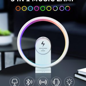 Qoosea 15 W Wireless Charger with Bluetooth Speaker and Night Light Induction Wireless Chargers with 5 RGB Light Modes Touch Dimmable Bedside Lamp Gifts for Women and Men