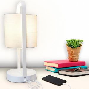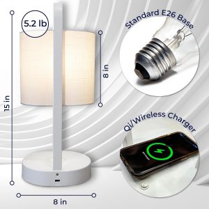 Vertical Lamp White Modern Electric Night Light or Table Lamp with Wireless Qi Fast Charger, Emergency Battery Back Up, USB Charging, Office, Home (White)