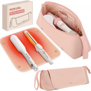 Hot Hair Tools Travel Bag with Heat Resistant Mat Removable Hair Styling Accessories Organizer Case Women Essentials Storage Pouch for Curling Iron Straightener Flat Iron Hair Dryer Gift Pink