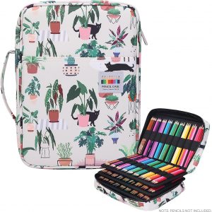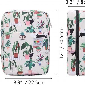 JAKAGO 220 Slots Colored Pencil Case Large Capacity Pen Holder for Artist Painter Zipper Organizer Bag for Marker Highlighter Storage Case for Office Sketch Travel Supplies (Green Plant Cat)