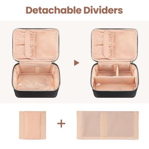 OCHEAL Makeup Bag, Cute Makeup Organizer Bag Potable Make up Bag for Cosmetics Toiletry Accessories with Divider and Brushes Compartments, Makeup Travel Case Cosmetic Bags Women and Girls-Black
