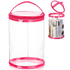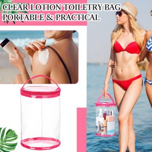 Sanwuta Rose Red Lotion Toiletry Bag Beach Sunscreen Travel Makeup Case Waterproof PVC Cosmetic Bag with Handle Zipper Portable Survival Organizer Pouch for Women Pool Gift