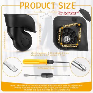 Silkfly 4 Pcs Luggage Wheels Replacement Travel Suitcase Caster Wheels Mute Bearing Swivel Wheel with Screw Replacement Left and Right Wheels for Luggage (Large Hole Pitch 1.42″/1.42″/1.65″/1.97″)