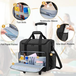 Trunab Rolling Teacher Bag, Teacher Tote Bag with Bottom Pad and Detachable Trolley, Wheeled Teacher Bag with Padded Sleeves Holds up to 15.6” Laptop