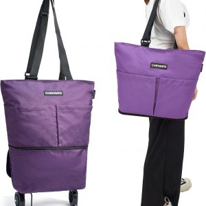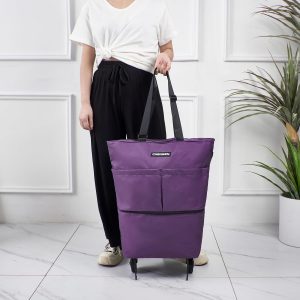 Upgrade Shopping Bag with Wheels Carry on Luggage Bag Reusable Shopping Bags Travel Bags Portable Trolley Bags- Larger Size & Waterproof & Strong(Purple)