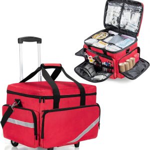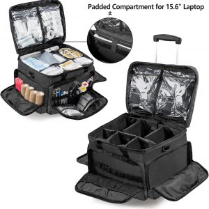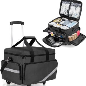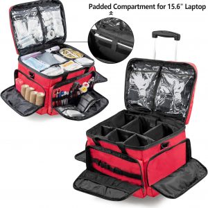 Trunab Rolling Medical Bag with Detachable Trolley, Nurse Rolling Bag with Removable Dividers 15.6” Laptop Sleeve, First Aid Responder Bag Empty for Home Health Nurses, Doctors, EMT, EMS