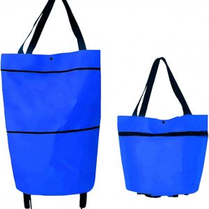 Trolley Folding Shopping Bag Collapsible Two-Stage Zipper Folding Shopping Bags 2 In 1 Foldable Shopping Portable Cart With Wheels Lightweight Storage Bag for Shopping Fruits Vegetables (Blue)