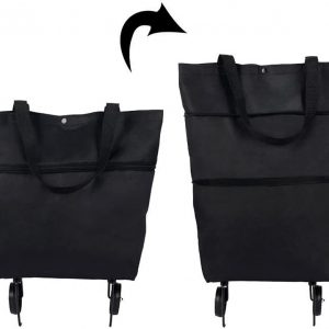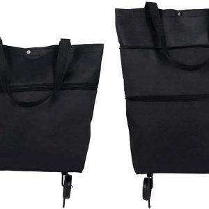 Trolley Folding Shopping Bag Collapsible Two-Stage Zipper Folding Shopping Bags 2 In 1 Foldable Shopping Portable Cart With Wheels Lightweight Storage Bag for Shopping Fruits Vegetables (Black)