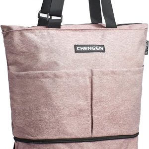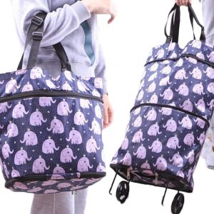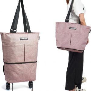 Upgrade Shopping Bag with Wheels Carry on Luggage Bag Reusable Shopping Bags Travel Bags Portable Trolley Bags(Grey Pink)