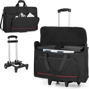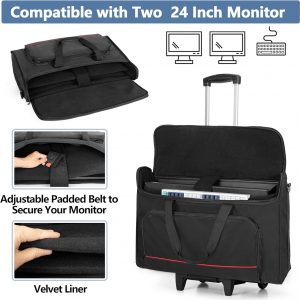 Trunab Rolling Monitor Carry Case for 24 Inch Monitors with Detachable Trolley, Padded Monitor Bag Hold Up to 2 LCD Screens/TVs and Accessories, Black Patented Design
