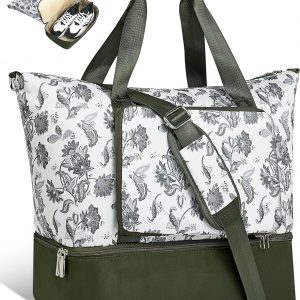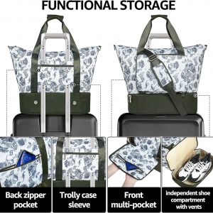 UNIQUEBELLA Weekender Bag for Women Travel, Large Sports Travel Duffel Bag with Shoe Compartment Lightweight Foldable Carry On Overnight Tote with Trolley Sleeve for Camping, Gym, Beach and Vacation