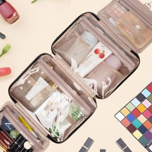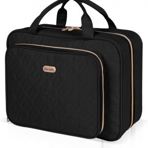 Black Toiletry Bag Travel with Hanging Hook, Water-resistant Cosmetic Makeup Bag Organizer for Shampoo, Full Sized Container, Toiletries