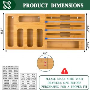 Calmbee Storage Bag Organizer, Foil and plastic Wrap Organizer with Cutter, Kitchen Organizers and Storage Compatible with Gallon, Quart, Sandwich, Snack Bags and 12″ Aluminum Foil & Wax Paper
