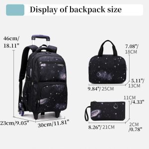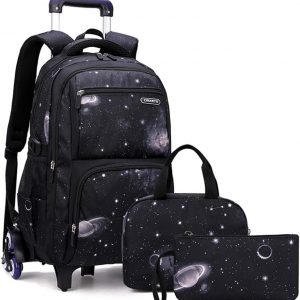 Boys Rolling Backpacks Kids’Luggage Wheeled Backpack for School Boys Trolley Bags Space-Galaxy Roller Bookbag