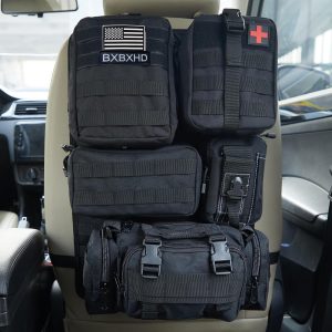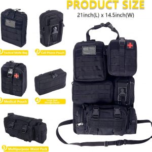 BXBXHD Universal Tactical Car Seat Back Organizer Bag Tactical Molle Vehicle Organizers Panel Vehicle Protector Organizers with 5 Detachable Pouches for Car Truck Ford Jeep Vehicle (Black)