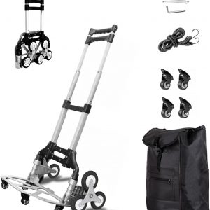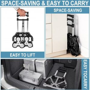BONIKLUBA Folding Hand Truck Dolly Cart, Portable 180 LBS Capacity Stair Climber Cart, Heavy Duty with Aluminum Alloy Bracket&Rubber Mute Dolly Wheels Carts-for Moving,Shopping,Travel