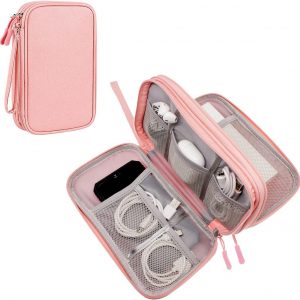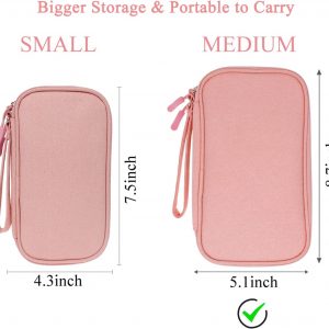 Bevegekos Tech Organizer Travel Case, Carry On Essentials Pouch Bag for Electronics & Accessories (Light Pink, Medium)