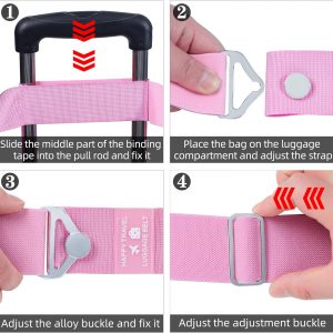 Bylion 2-in-1 Travel Belt for Luggage, Luggage Straps for Add a Bag Adjustable Suitcase Straps with Alloy Buckle Elastic Bungees Belt Hands-Free for Airport, Personalized Travel Accessories (Pink)