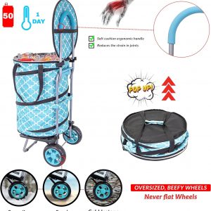 Bigger Cooler Trolley Dolly Insulated Folding Shopping Cart with Removable Bag Rolling Beach Tote Cooler with Wheels Pop Up Golf, Turquoise