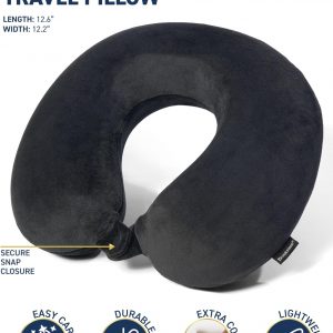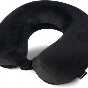 Brookstone Memory Foam Travel Neck Pillow for Vacations, Airplanes, Trains, Buses, and Cars, Black