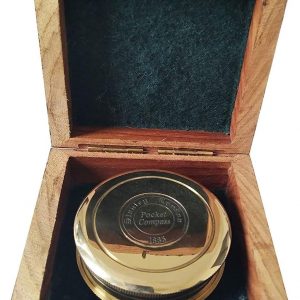 Brass Pocket Compass in Wood Box, 2.3 Inches, Gift Set