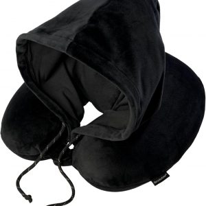 Brookstone Hooded Memory Foam Neck Pillow with High Density Memory Foam for Vacations, Airplanes, Trains, Buses, and Cars (Black)
