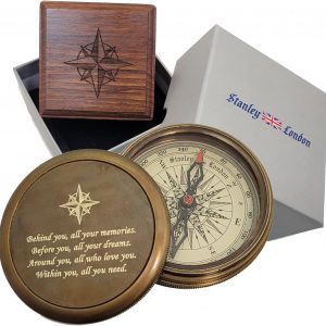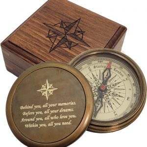 Personalized Compass Engraved | Gift for Baptism, Confirmation, Graduation, Anniversary | Antique Brass Desk Compass in Wood Box for Men, Him, Son
