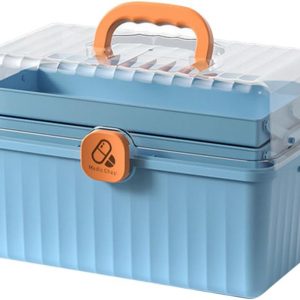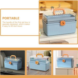 Tofficu First Aid Box Family Medicine Box Organizer Storage Fold 3- Layer Large Medicine Cabinet Household Medicine Storage Box Medicine Chest Medication Chest Storage Container Inhaler Case