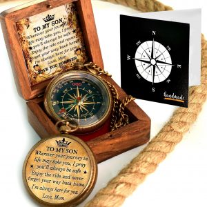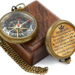 to My Son Compass with Wooden Box-Mom to Son Compass–Father to Son Gifts- to My Grandson -Graduation Day Gifts for Son-Birthday, Baptism, Graduation, Confirmation, Communion Compass for Women Men