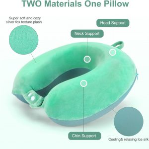 Travel Neck Pillow, Best Memory Foam Airplane Pillow for Head Support Soft Adjustable Pillow for Plane, Car & Home Recliner Use (Green)