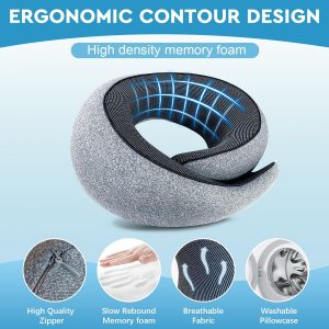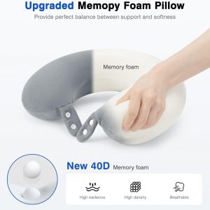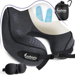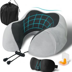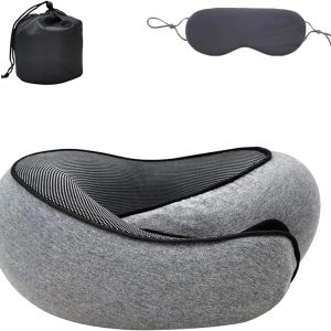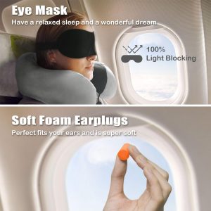 Travel Pillow, Memory Foam Neck Pillow for Traveling, U Shape Neck Pillow Airplane Portable Flight Pillow Travel Kit with 3D Contoured Eye Masks and Earplugs for Plane Train Car Home Office – Grey