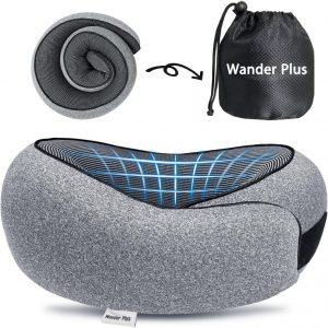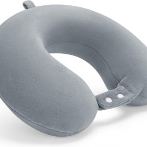 Travel Pillow Vacuum Compressed Memory Foam Neck Pillow,Real Sleeping Experience on Long Flights – Neck and Shoulder Support-Super-Soft,Lightweight,and Machine-Washable,Plane Accessories, Grey