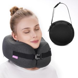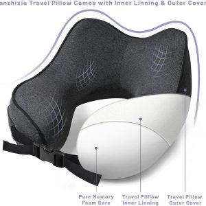 Travel Pillow Memory Foam for Airplanes – Neck Pillow for Traveling, Car, Home, Flight Pillow for Sleeping with Attachable Snap Strap Soft Washable Cover, Provide Head Neck Support Rest, Dark Gray