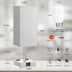 【Modern Gray Lamp for Room Decor】Dimmable table lamp is well made and sleek in design, Linen fabric lamp shade gave off a warm and pleasant glow, providing you with a relaxed and comfortable atmosphere. Ideal side table lamp for bedroom, kids room, living room, office, dorm, study room. Merry Christmas gift for friends, kids and family. The height of the small lamp is 15.35 inch, please check the size photo.