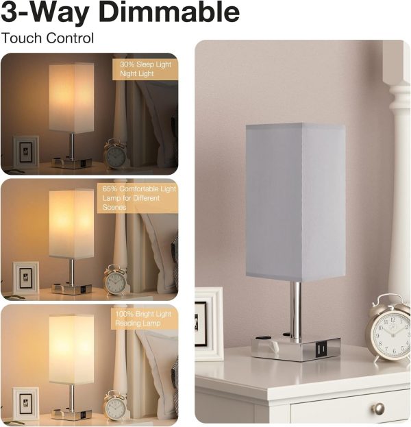 【3-Way Dimmable Touch Bedside Lamp】Featured with smart touch sensitive sensor, small touch lamp has 3 different brightness levels and convenient to turn on/off because you can adjust light setting by tapping on silver metal base. Night light lamp for steady sleep or nursing, accent lighting for ambience, brightest setting for reading or working