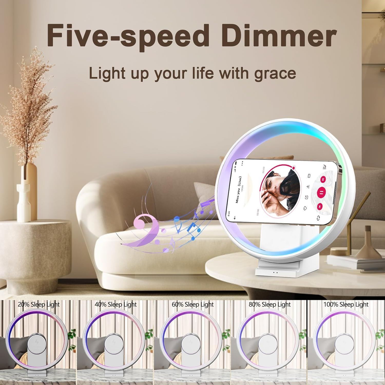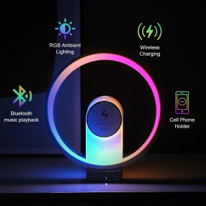 10W Bluetooth Speaker Night Light- 4 in 1Night Light with Wireless Charger- vireless Charging Speaker Speaker, Phone Holder, Birthday Gifts for Women, Men, Mom