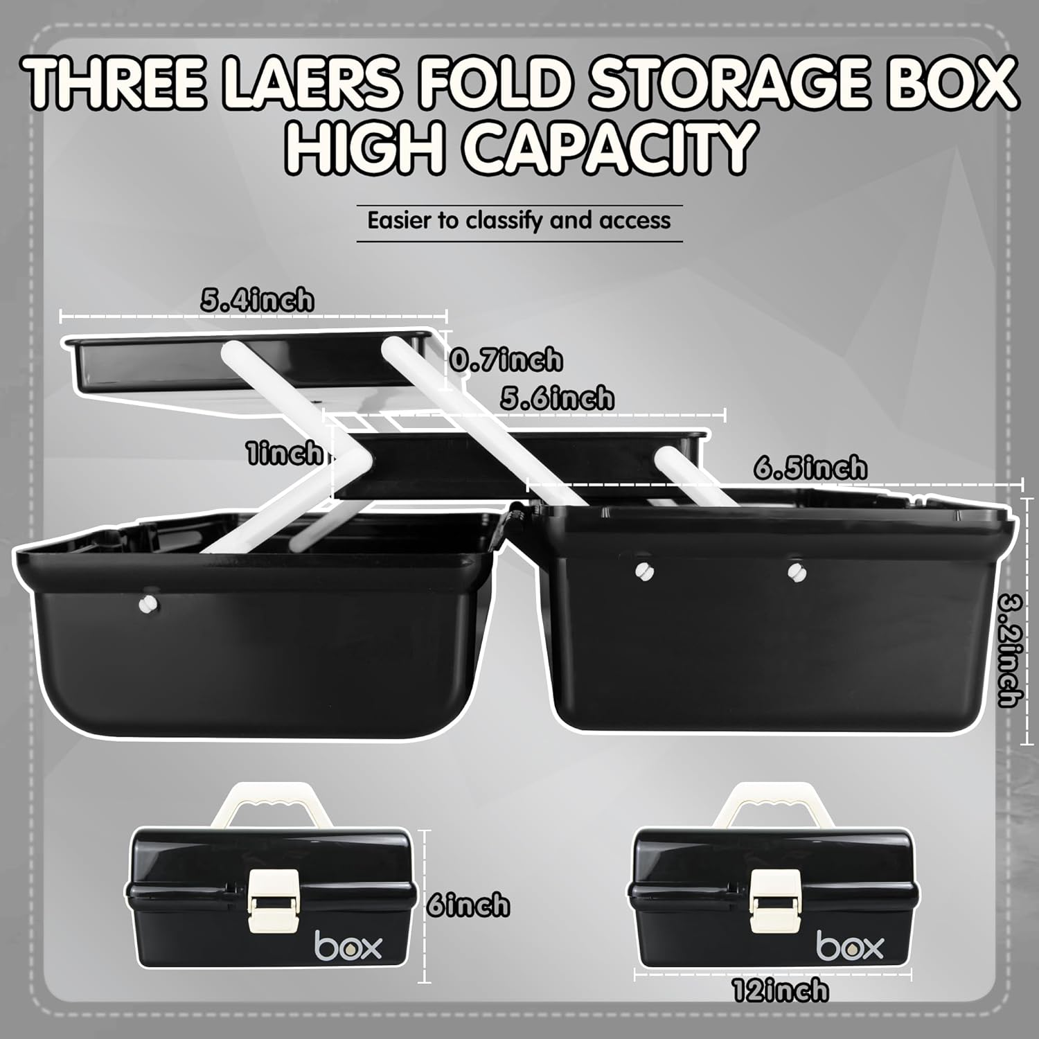 12in Three-Layer Multipurpose Storage Box Organizer Folding Tool Box / Art & Crafts Case / Sewing Supplies Organizer / Medicine Box / First Aid Box