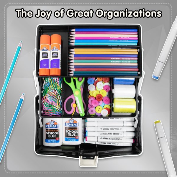 Efficient Storage: The tray of this art & crafts case is connected to the case itself through some brackets, when the cover is opened, all kinds of items will be presented in order before your eyes for easy access. Saves you from hunting things you need.