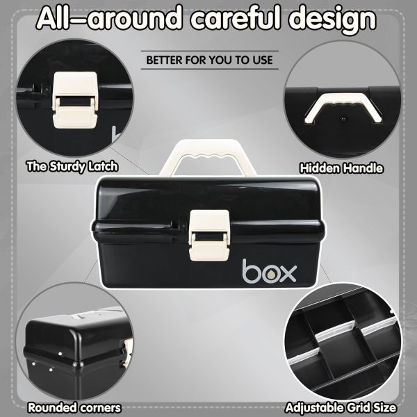 NEW!Light black organizer and storage box perfect for storage of craft supplies, medicines, sewing supplies, cosmetics, nail supplies, tools ,etc.Makes everything from Arts&Crafts supplies to medicines organized and easy to find due to MULTI-FUNCTION STORAGE BOX adopt a reasonable three-layer separation stepped design.The upper part of this storage bins with handles is transparent for keeping all items easy to see at a glance.Designed to provide you with a more effective storage method, enabling you to become a storage expert in a variety of occasions such as home, car, school, gym, travel, office, hospital, etc.