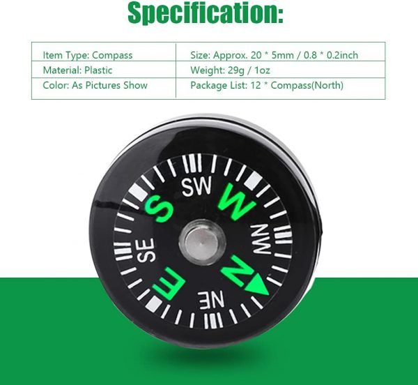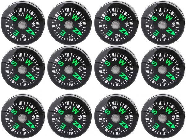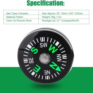 12Pcs Oil Filled Compass, Mini Pocket Button Compass for Camping, Hiking, Boating, Survival Bracelets Button Compass Small Compass