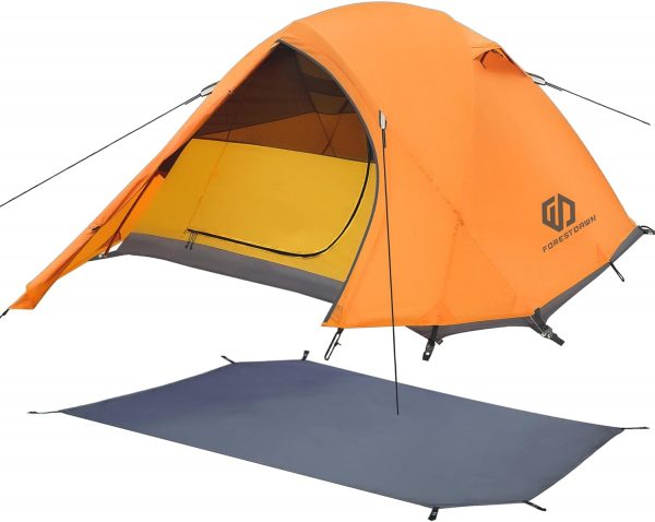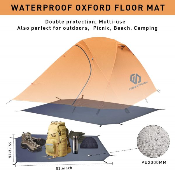 【Quick Setup & Portable】 Equipped with 3 free standing aluminum poles & 16pcs stakes and four 10″ guy lines cords that tighten at every corner, one person can easily set up the tent & flysheet in a few minutes; Weigh about 7.6lbs, dimensions 82.7(L) x 55.1(W) x 45.2(H) inches, package: 17.7(L) x 7.08(W) x 7.08(H) inches. Lightweight and portable ideal for backpacking.