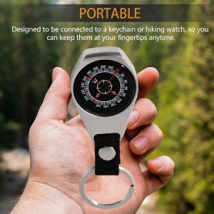 Lightweight and Portable: Made from lightweight metal, these compasses are easy to carry and won’t weigh you down. They’re designed to be attached to a keychain or a hiking watch, so you can always have them at hand.