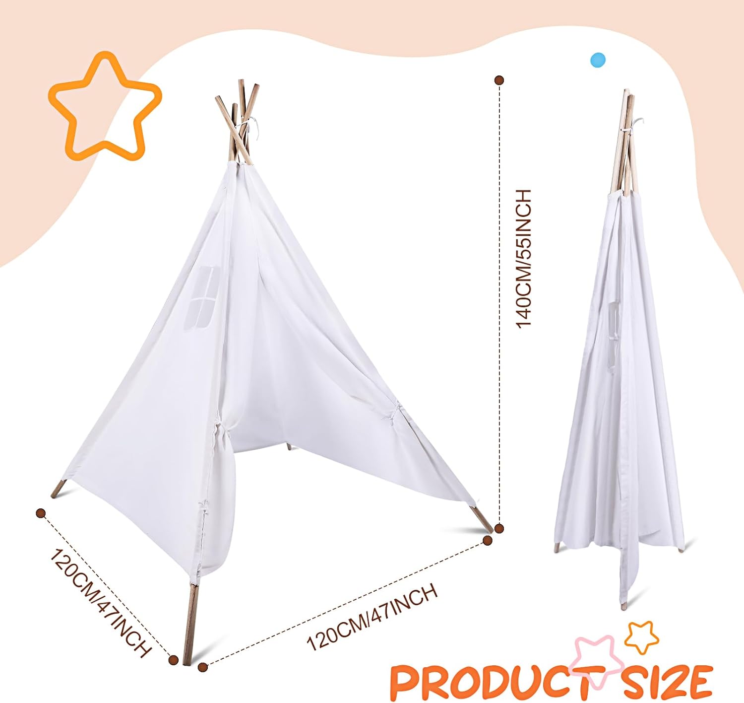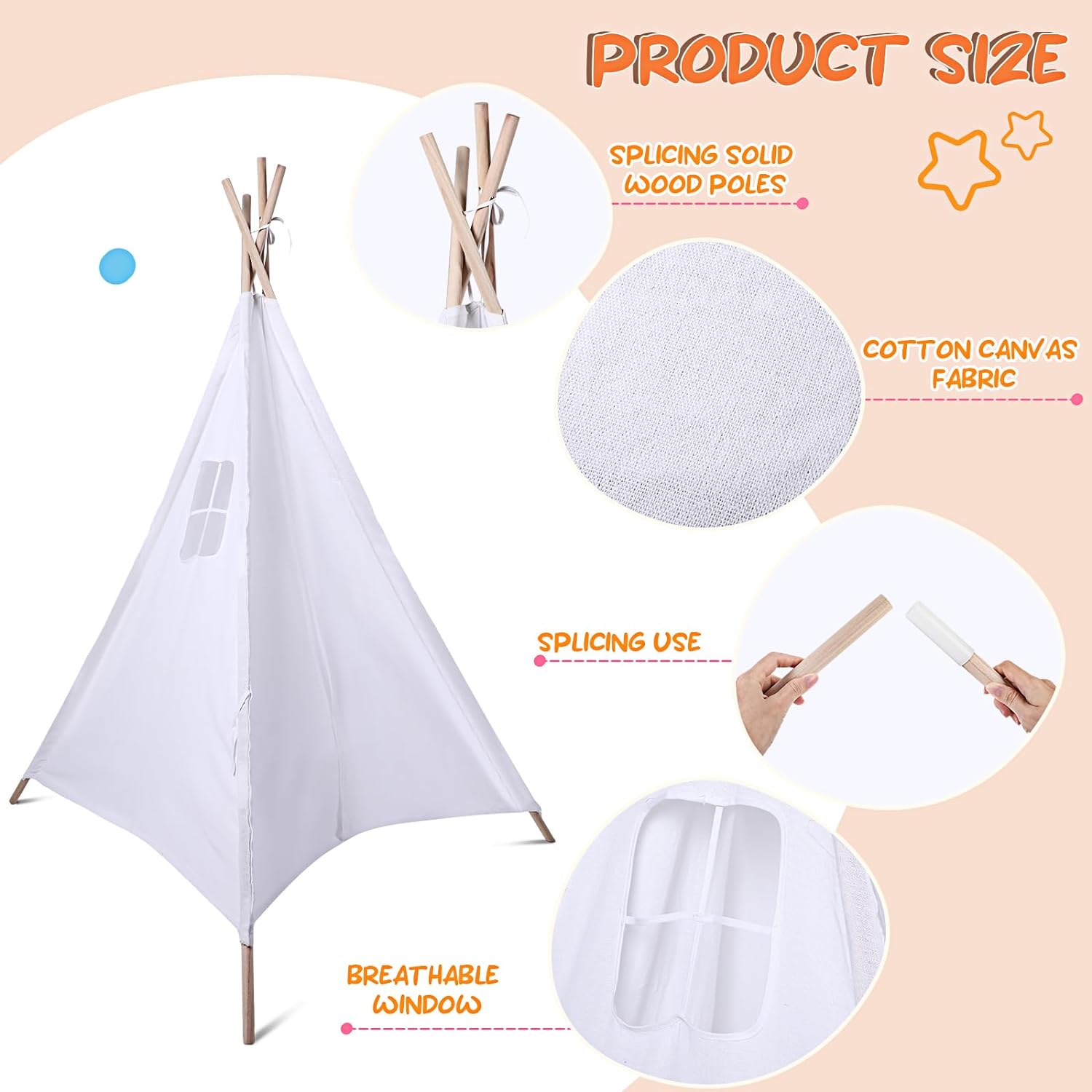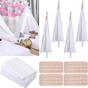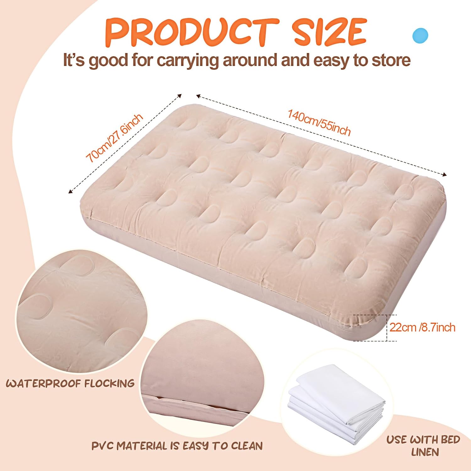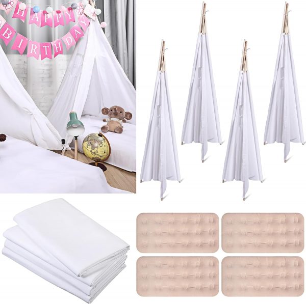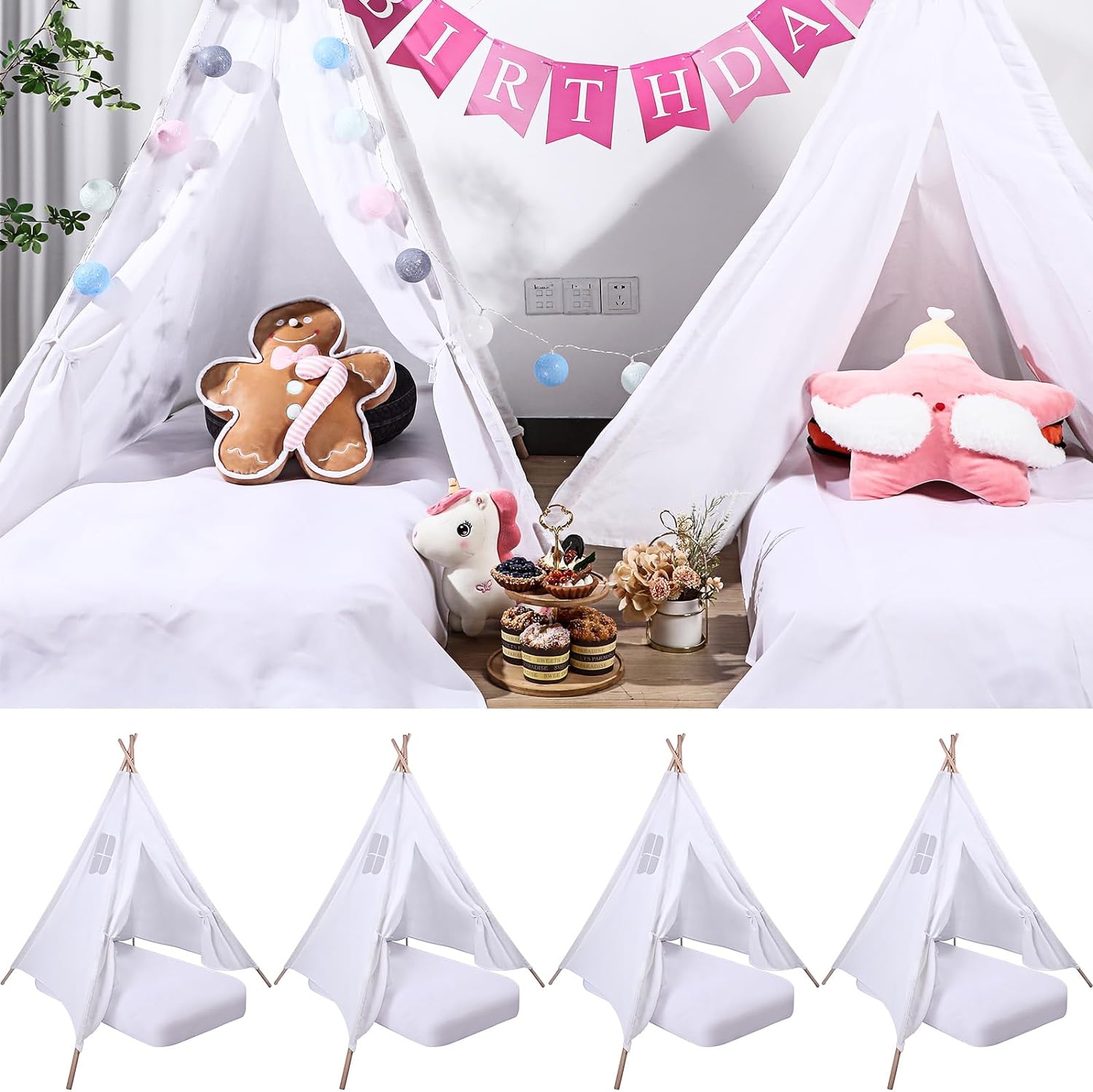 4 Pack Kids Inflatable Bed Teepee Tent Set, Includes 4 Portable Air Mattresses, Foldable Tents, and White Flat Sheets