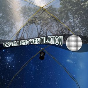 ⛺VISIBILITY AND VENTILATION : This large camping tent designed with quality mesh for top roof, door and windows. 3 roof vents plus low side vent create “chimney effect” ventilation, zippered access allows campers to adjust the vents from inside the tent, and overhead net window for plenty of air flow and heat dissipation for the instant cabin tent. You will enjoy the panoramic view from tent window and take pleasure in watching starry sky when you lying in tent with your families.