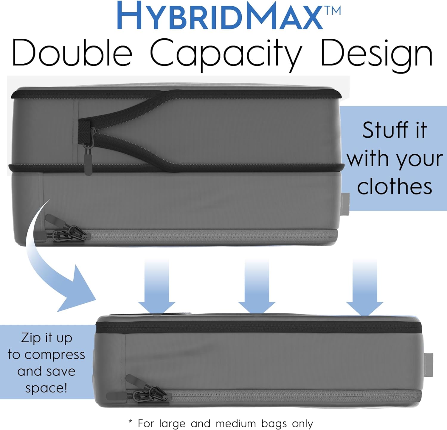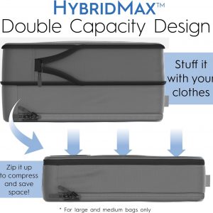 SPACE-SAVING DESIGN: Experience the revolution of packing with our HybridMax DOUBLE CAPACITY COMPRESSION DESIGN (patent-pending) compression packing bags. No matter the journey, our compression travel bags turn chaos into order. Designed for both carry-on and check-in suitcases, our innovative COMPRESSION DESIGN makes travel prep a breeze.