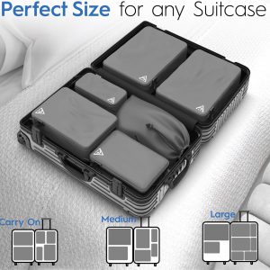 VERSATILITY & STYLE: Our packing cubes organizer set is more than just convenient; it’s a statement. Small, medium, and large cubes make a PERFECT SET for storing your essentials, while our array of EXCITING COLORS AND DESIGNS adds a stylish flair to your travel routine!