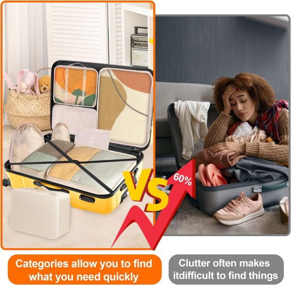 【Avoid Overweight Charges】8PCS different sizes of packaging, suitable for suitcases, handbags, weekend travel bags, backpacks and duffel bags carried by most airlines. A great way to stay organized for family holidays, business trips, backpacking, camping, hiking, motorhomes, cruise vacations and saddle bags. Take 1 cube with you as a carry-on item to reduce the weight of your checked baggage.